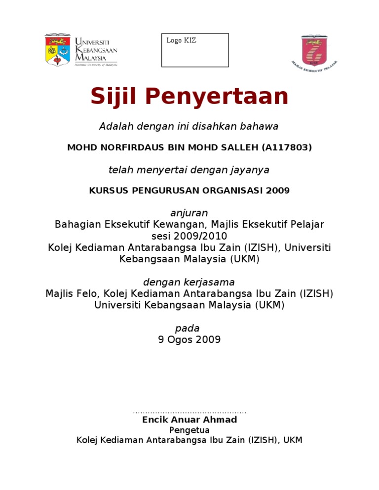 Melalui subjek mte ini saya sudah pandai membuat sijil sendiri. Sijil penyertaan adalah dengan ini diakui bahawa bahawa. Results for contoh sijil penyertaan sukan translation from malay to english. Contoh sijil penyertaan kem motivasi upsr 2010. 2011 smk batu 17, padang lumat panitia daerah bertambah 1.
